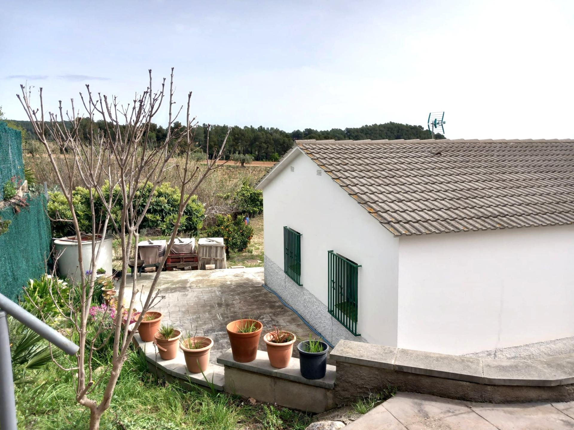 La parcel·la disposa de diversos arbres fruiters i el terra està preparat per a hort. Barbacoa feta d’obra amb emmagatzematge i zona de treball. Dos trasters i zona de taller. També disposa de cotxera a la mateixa entrada de la finca.