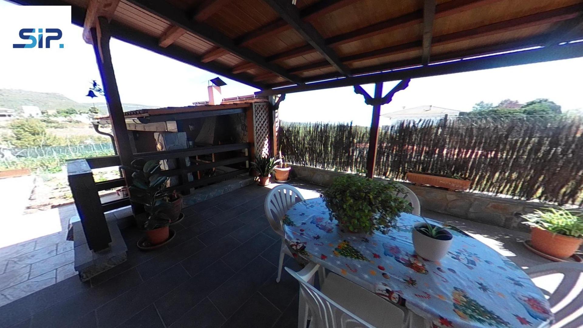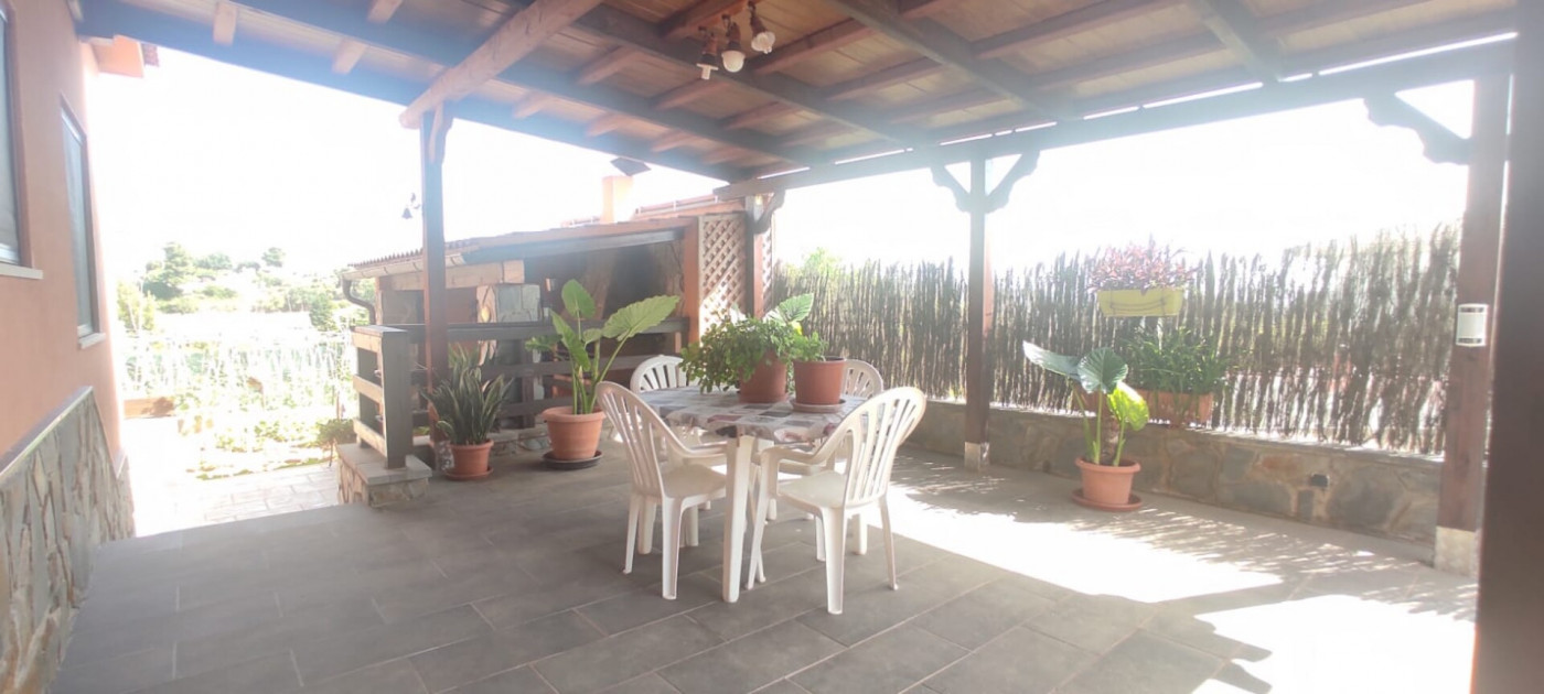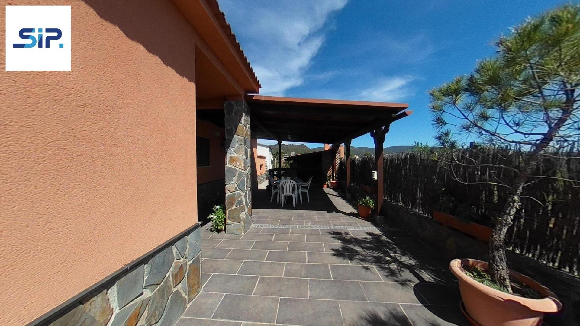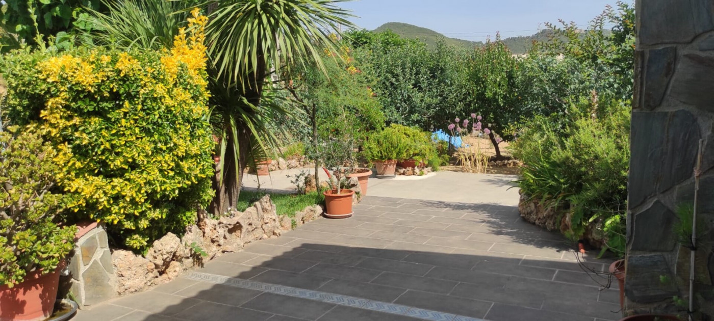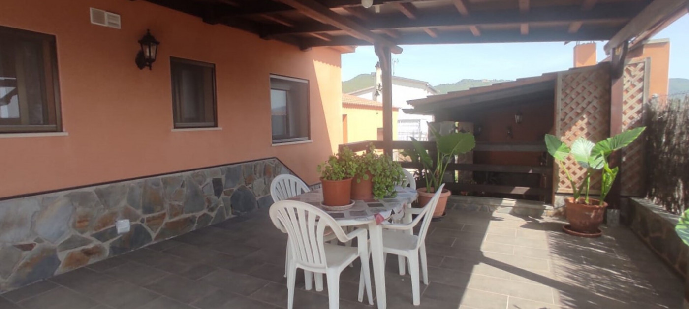 Exterior amb gran terreny de jardí al voltant de tota la casa, molt ben cuidat amb la seva zona de porxo cobert per poder fer barbacoes i gaudir tot l’any, zona d’hort on poder cultivar i petita construcció com a magatzem que es pot convertir en una altra habitació independent a la casa.