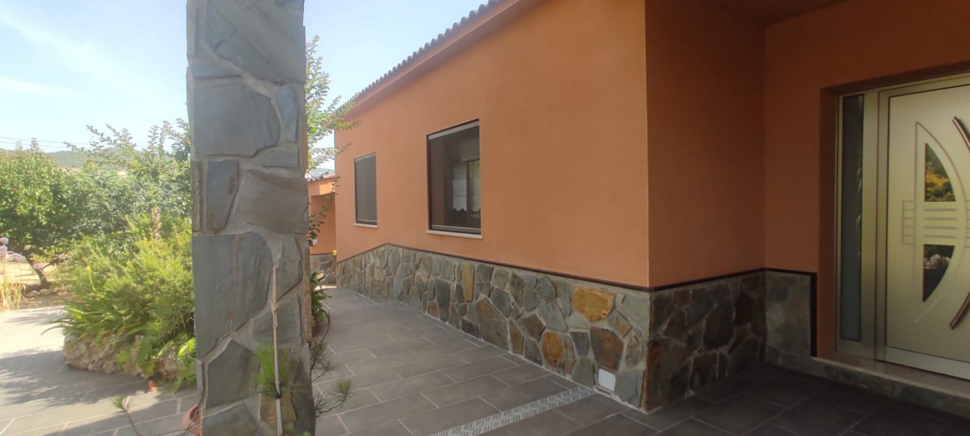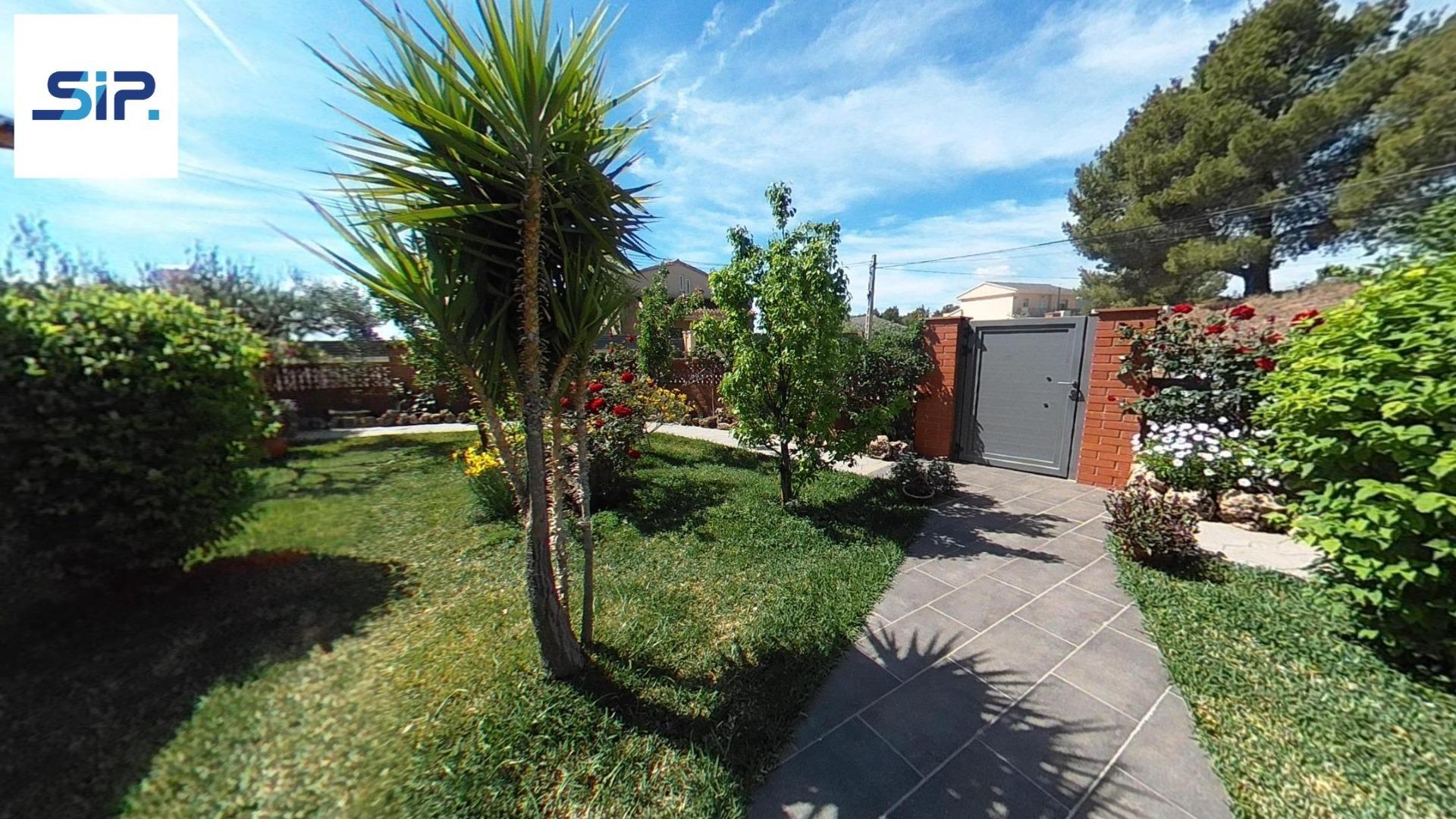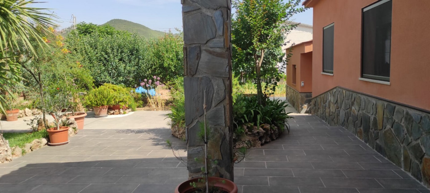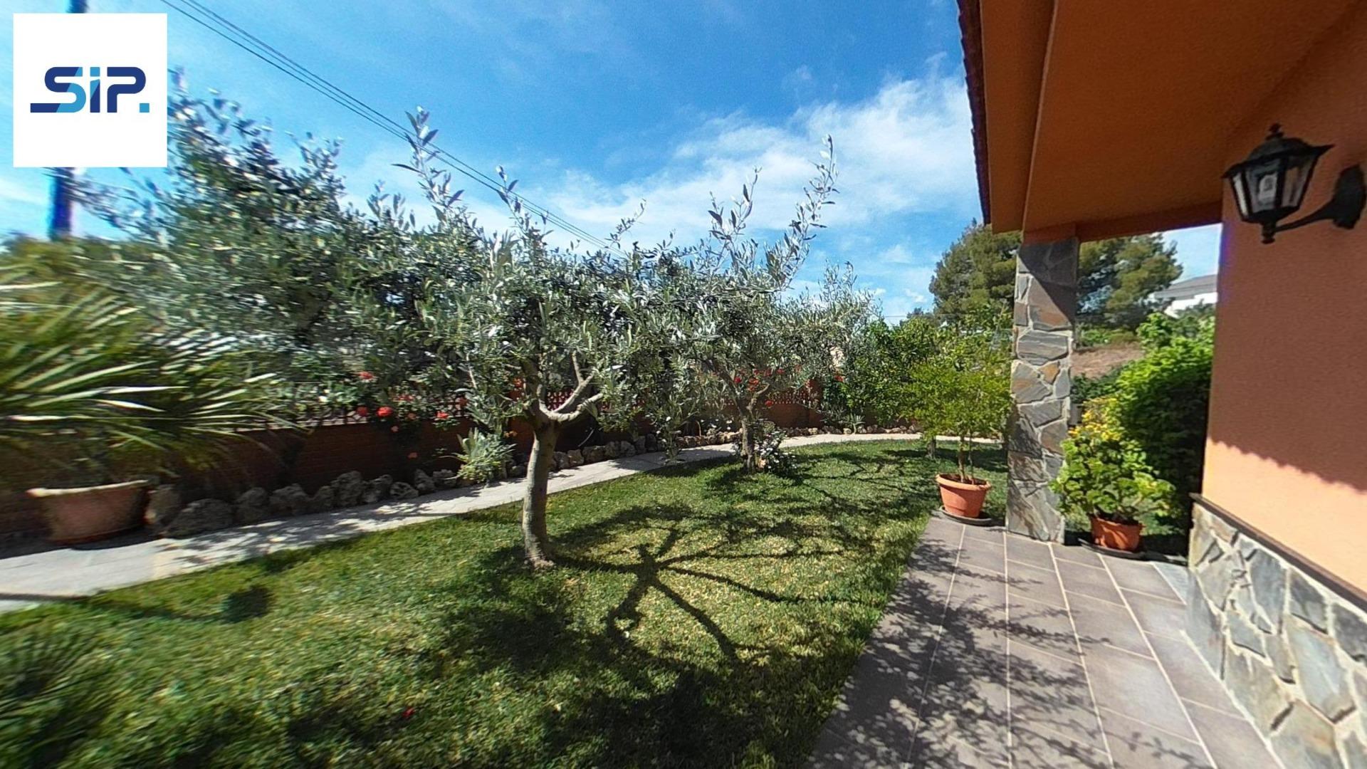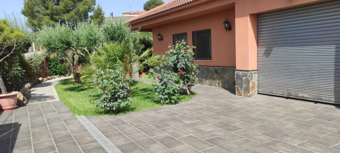 Exterior amb gran terreny de jardí al voltant de tota la casa, molt ben cuidat amb la seva zona de porxo cobert per poder fer barbacoes i gaudir tot l’any, zona d’hort on poder cultivar i petita construcció com a magatzem que es pot convertir en una altra habitació independent a la casa.