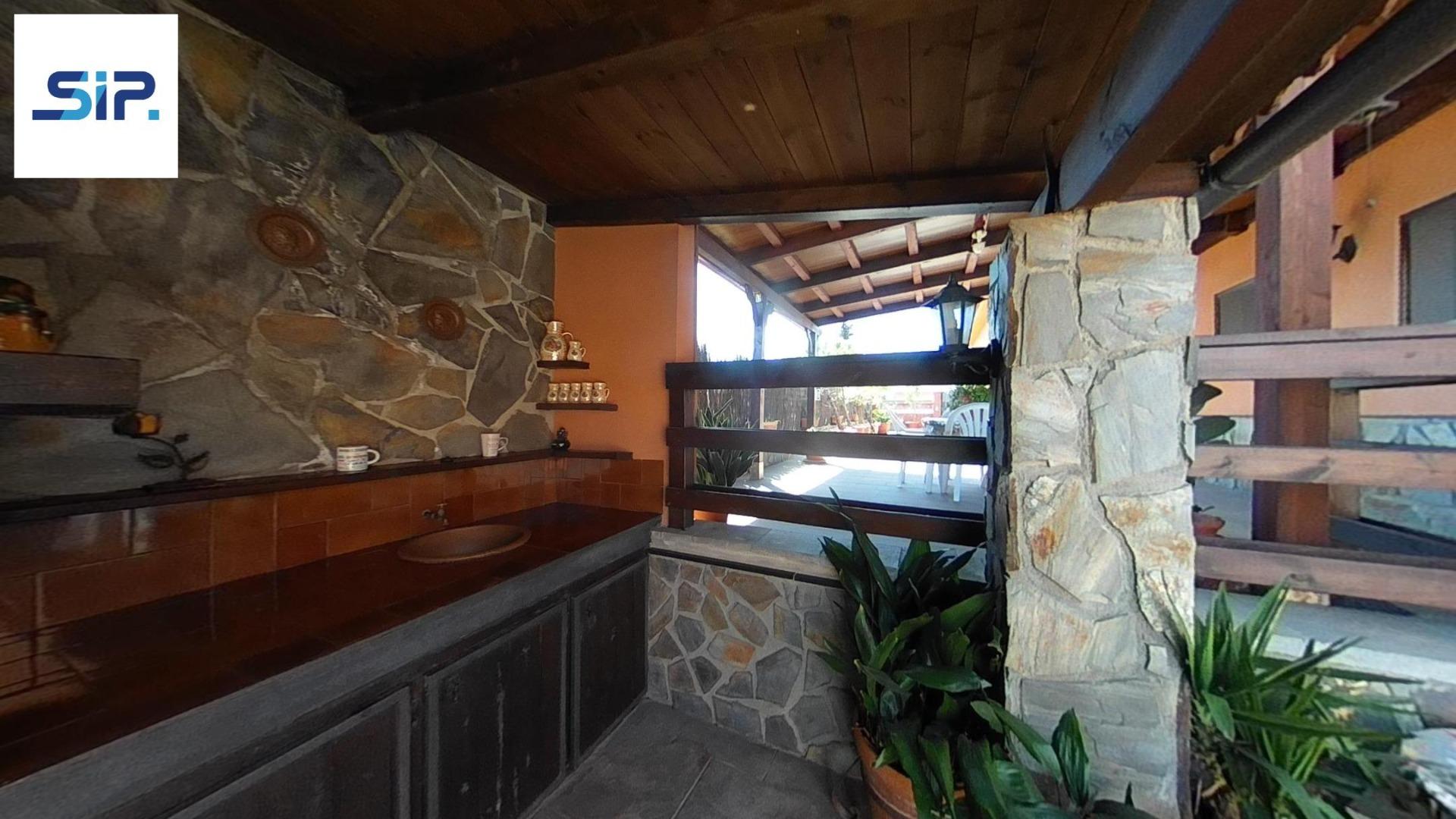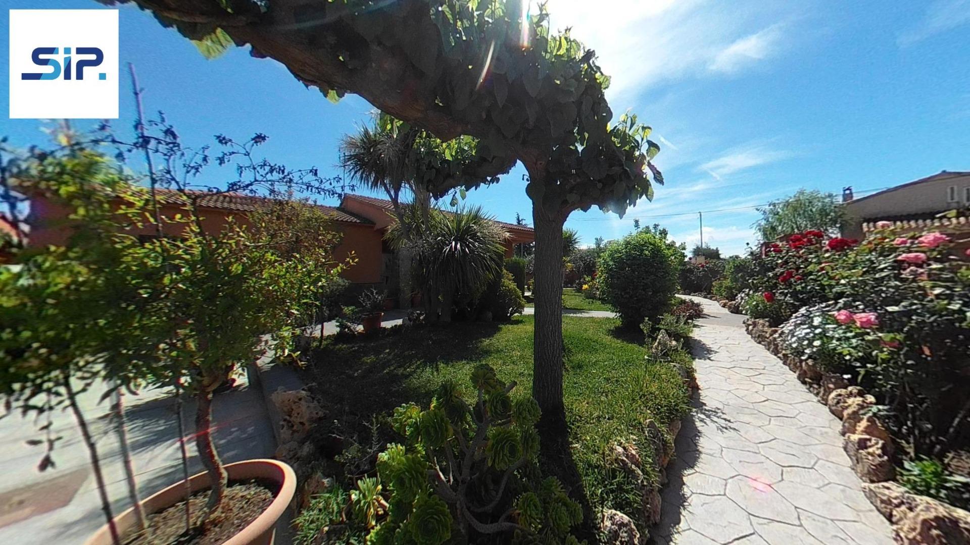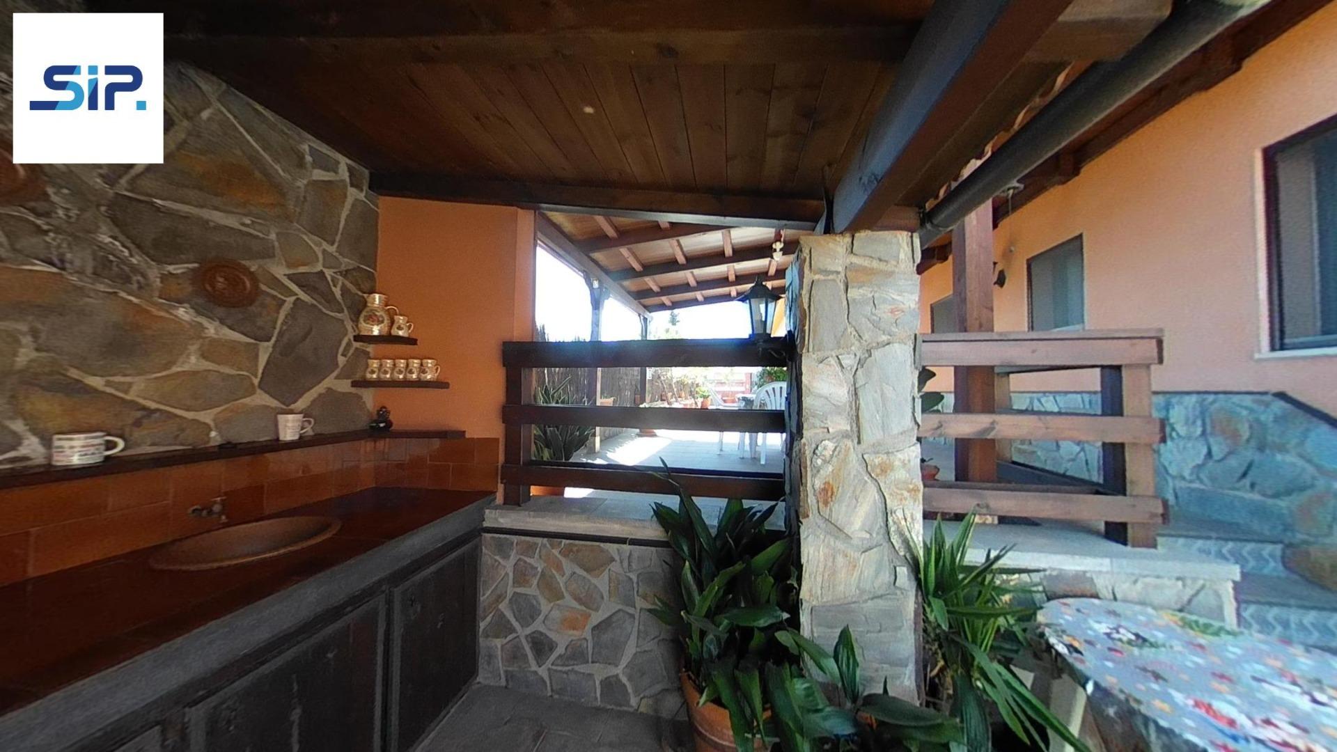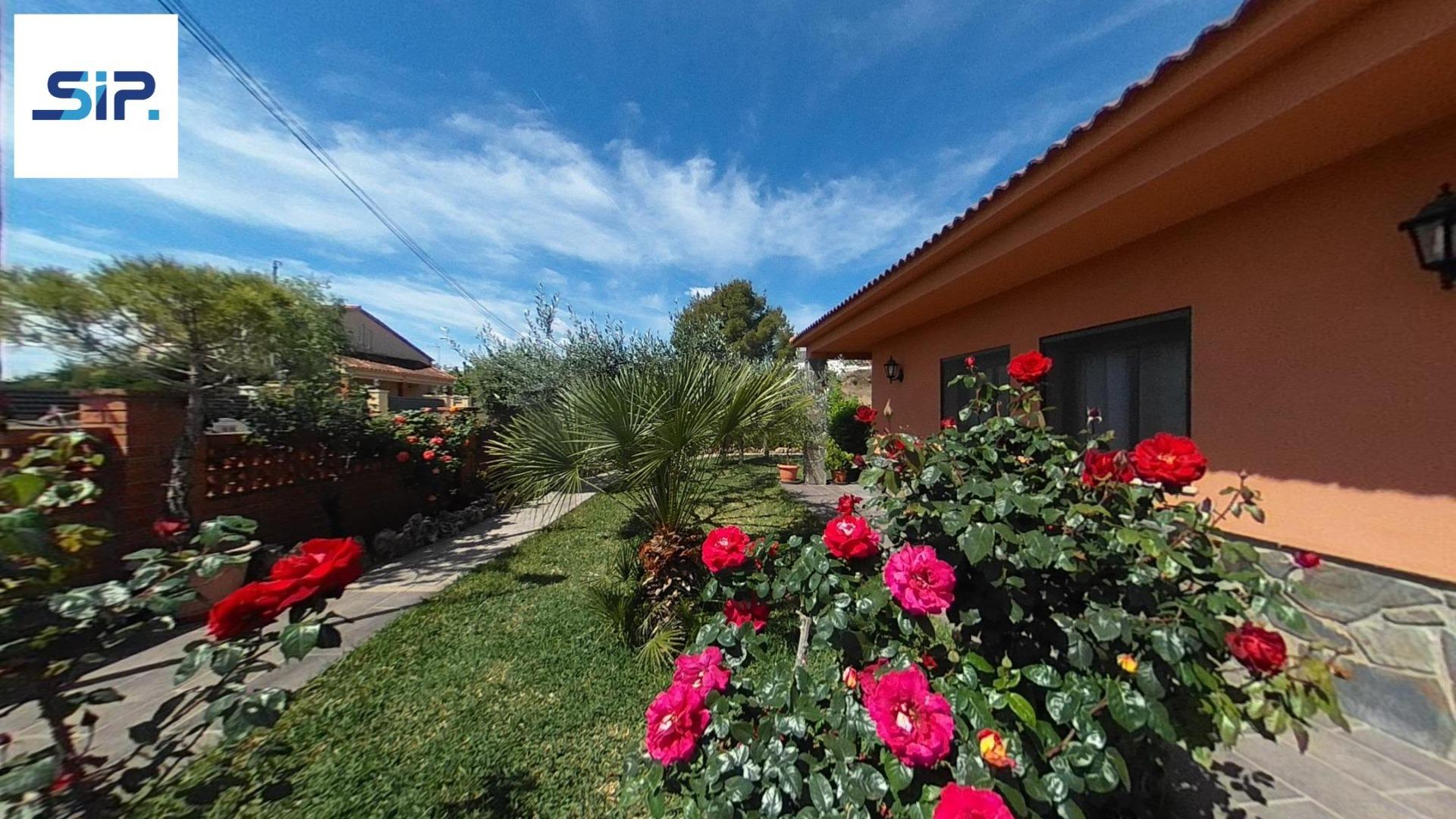 Exterior amb gran terreny de jardí al voltant de tota la casa, molt ben cuidat amb la seva zona de porxo cobert per poder fer barbacoes i gaudir tot l’any, zona d’hort on poder cultivar i petita construcció com a magatzem que es pot convertir en una altra habitació independent a la casa.