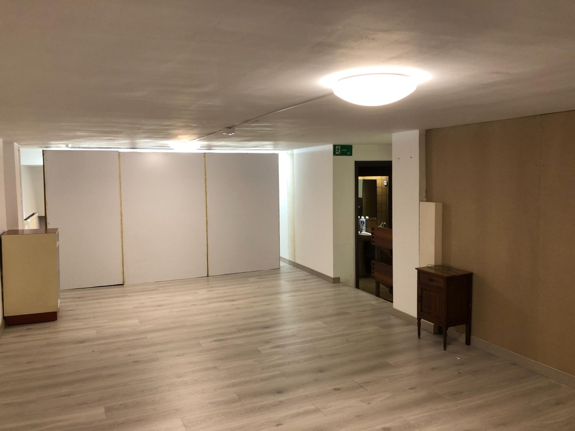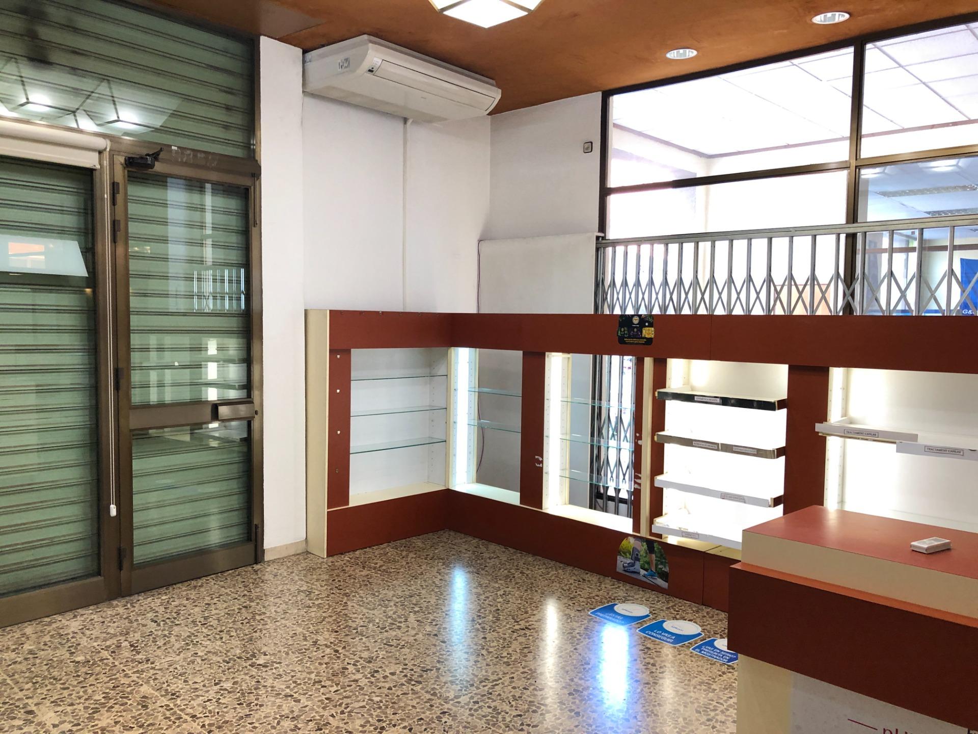 Aquest local comercial, utilitzat com a farmàcia, té 100 m2 útils distribuïts en diferents espais; una primera planta on trobem l’espai de la botiga, un despatx i una gran sala utilitzada com a magatzem.
