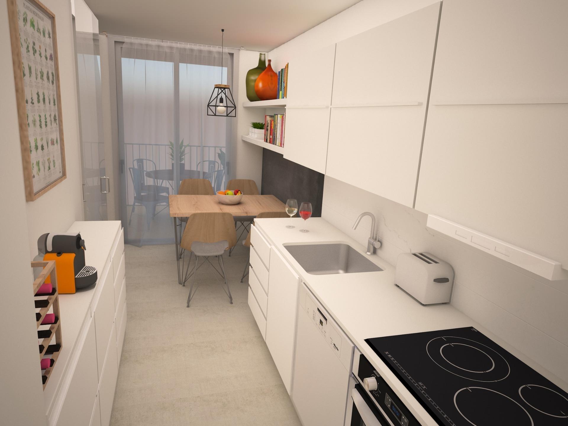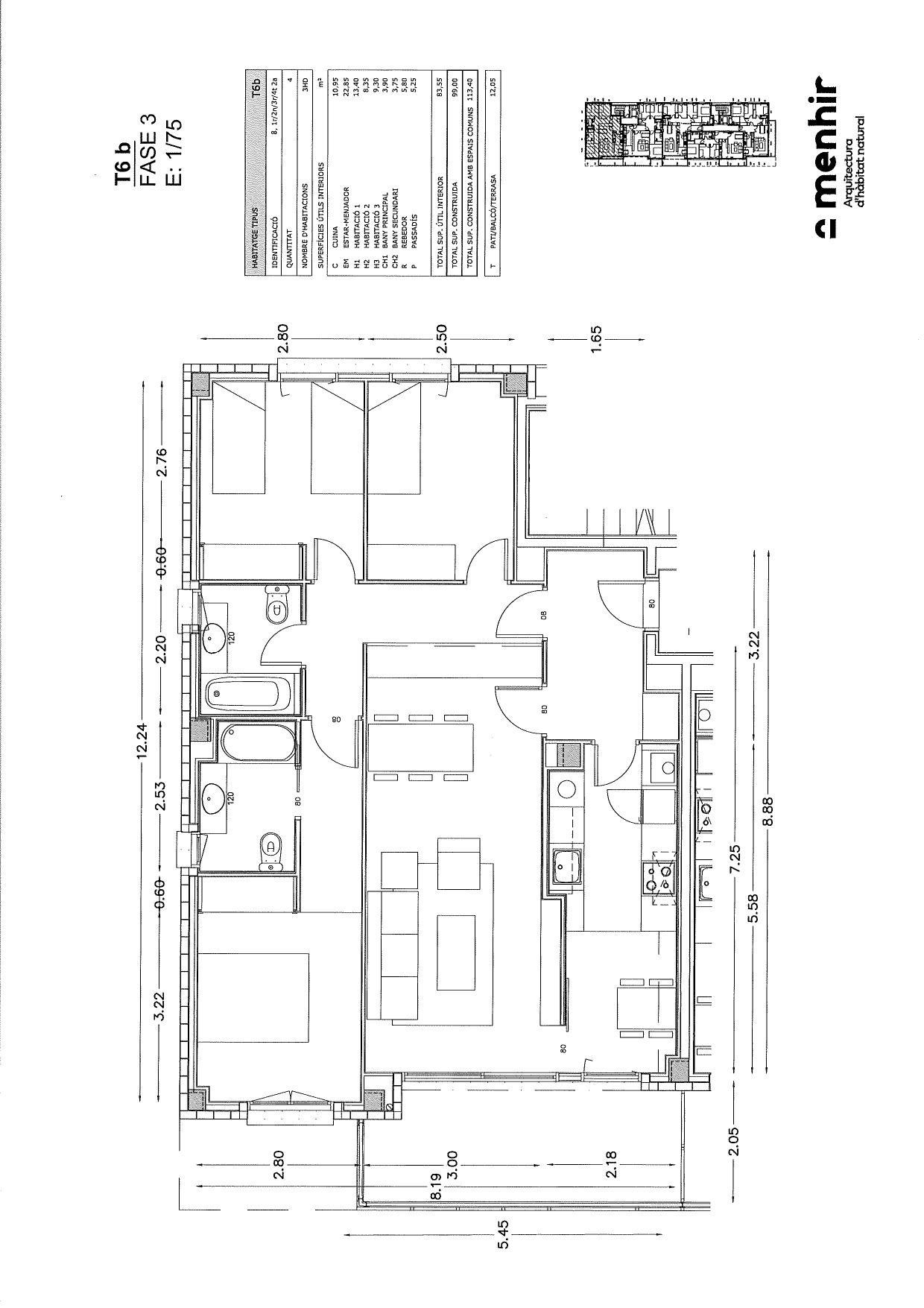 Consta de 3 habitacions , 1 doble tipus suite, 2 individuals, cuina i lluminós saló- menjador amb sortida a terrassa de 13,85 m².