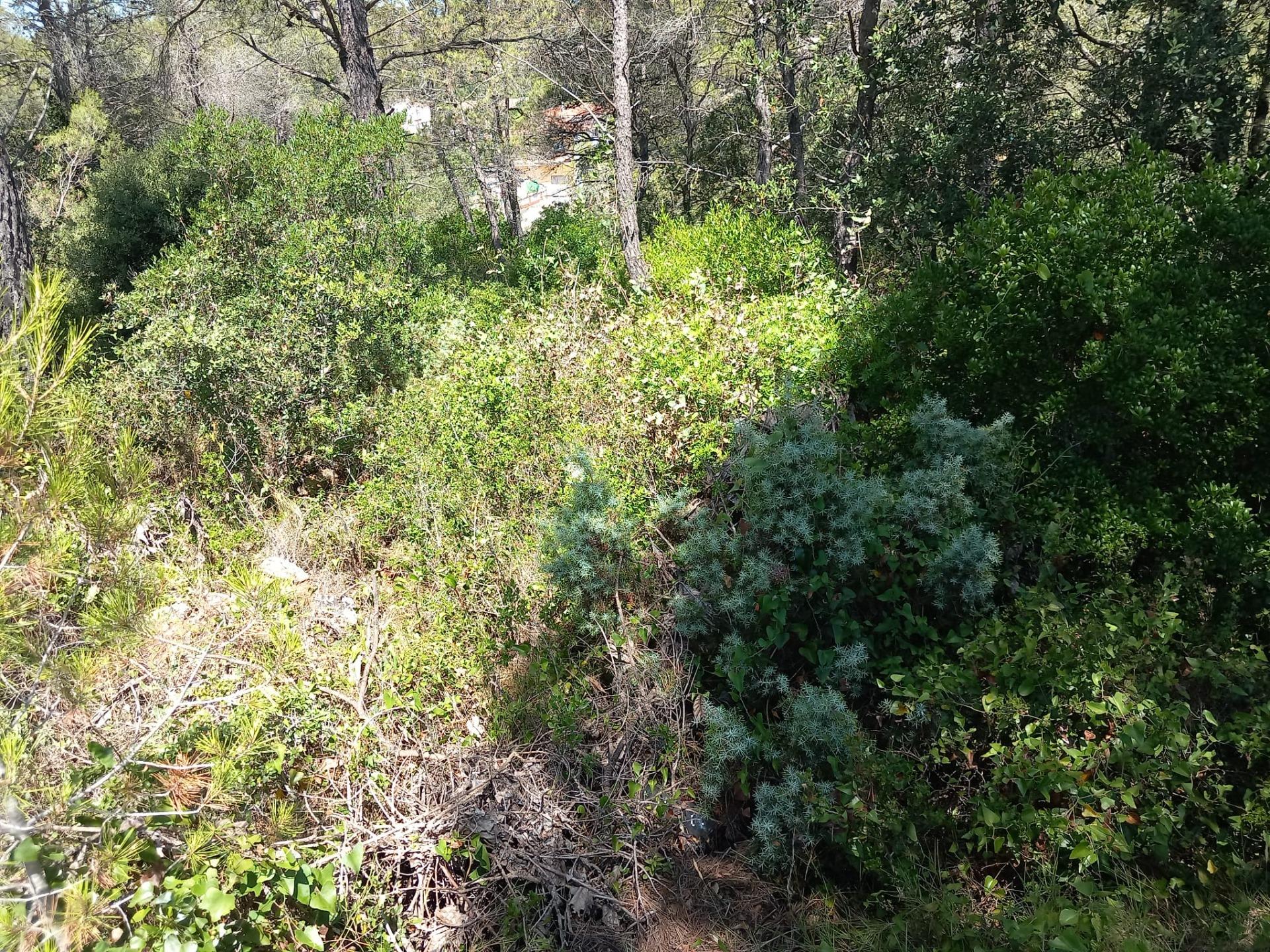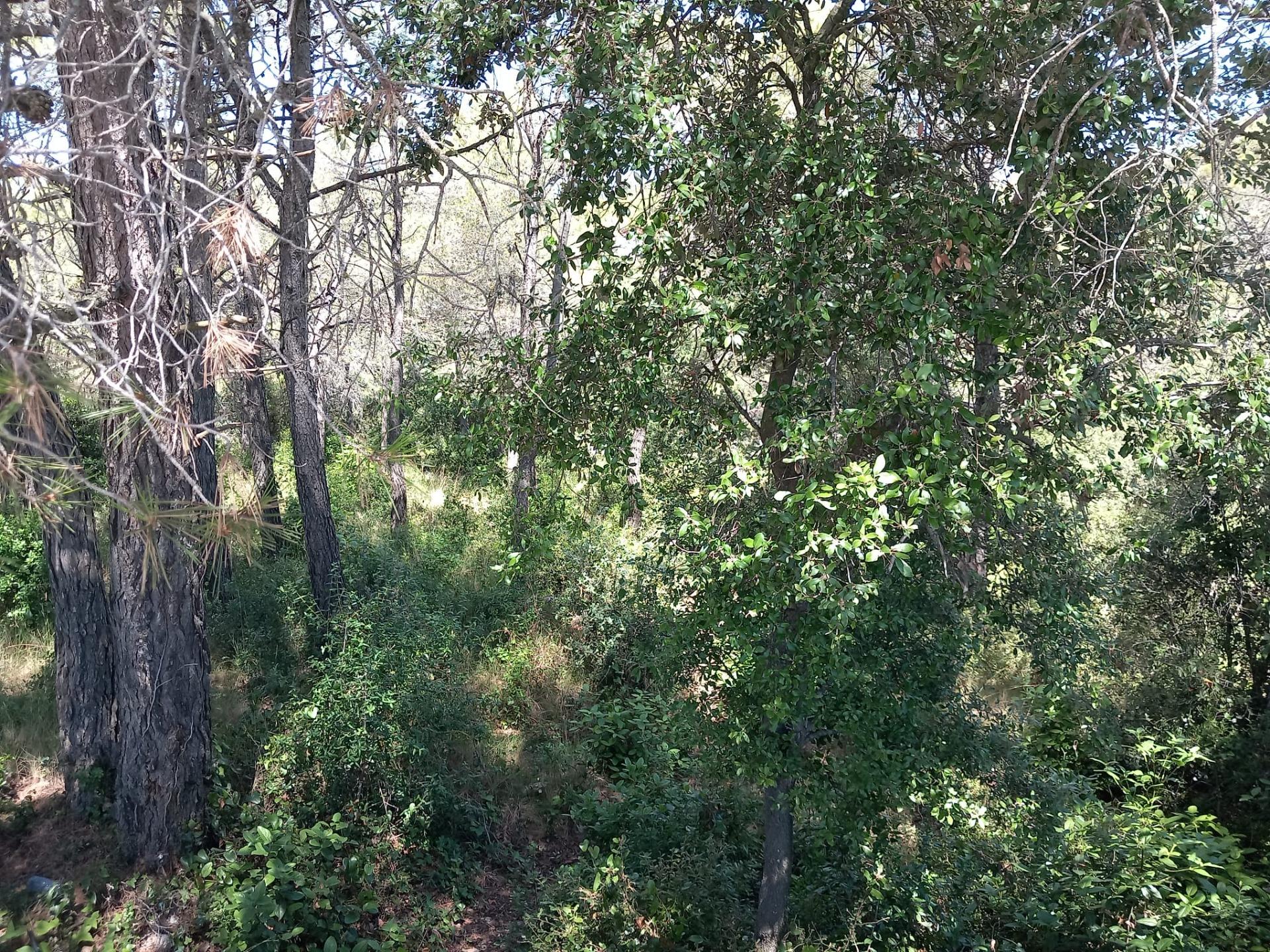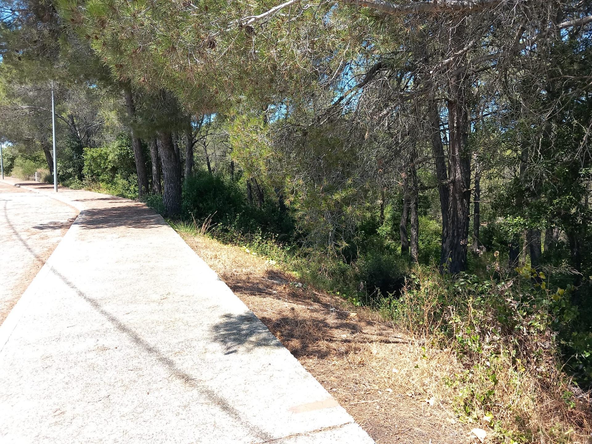 Terreny parcialment pla de pins en un carrer sense sortida.