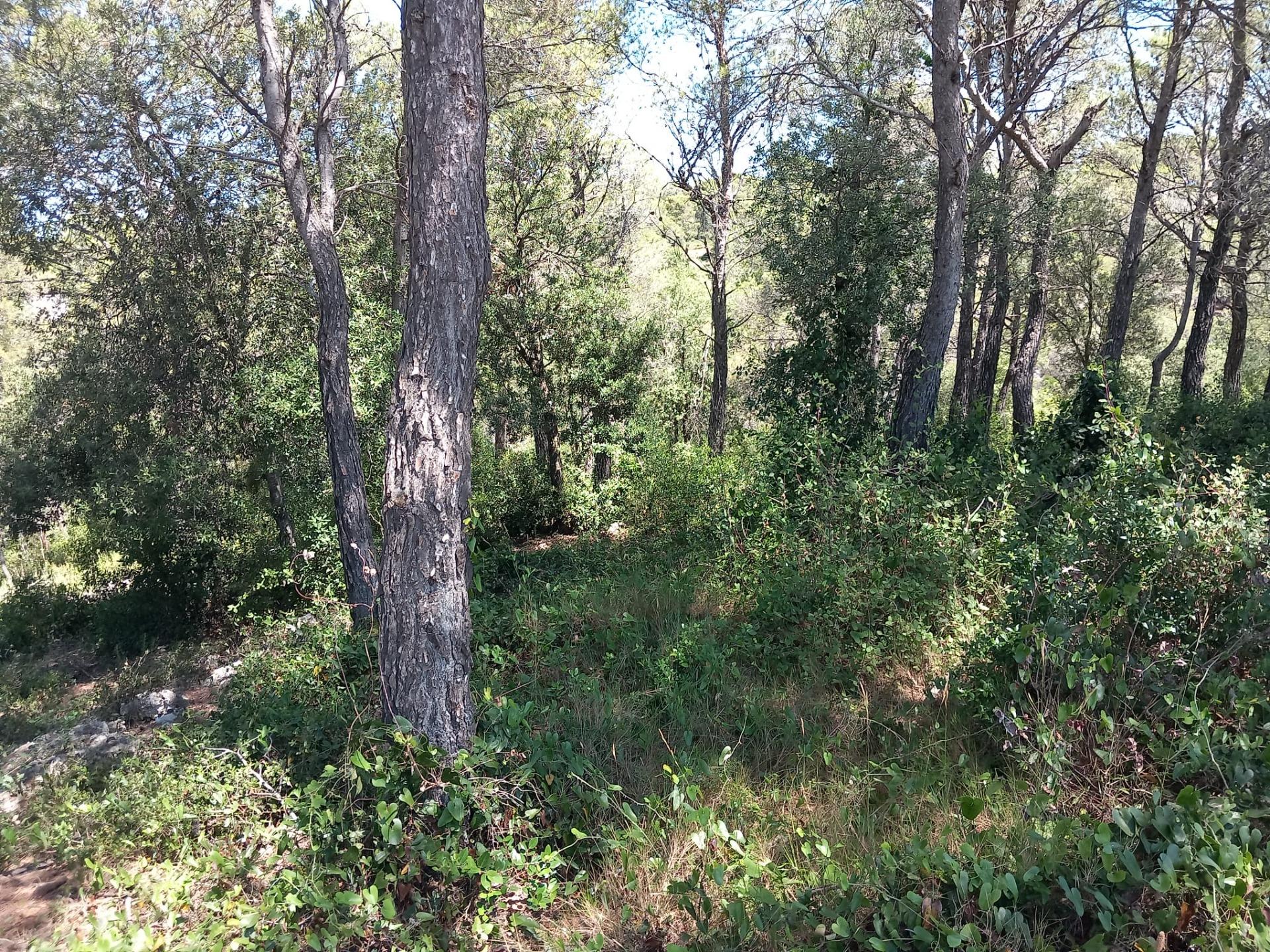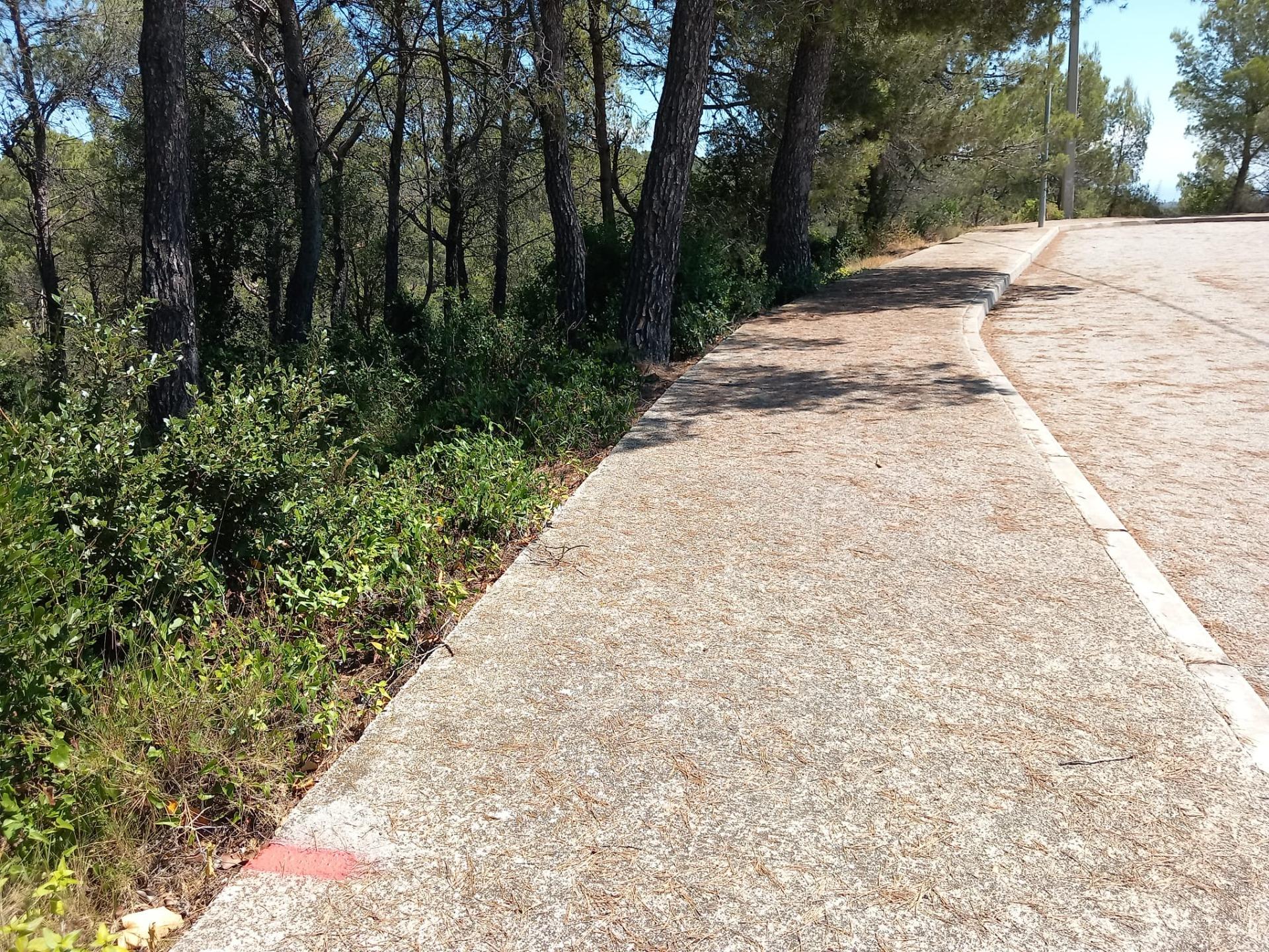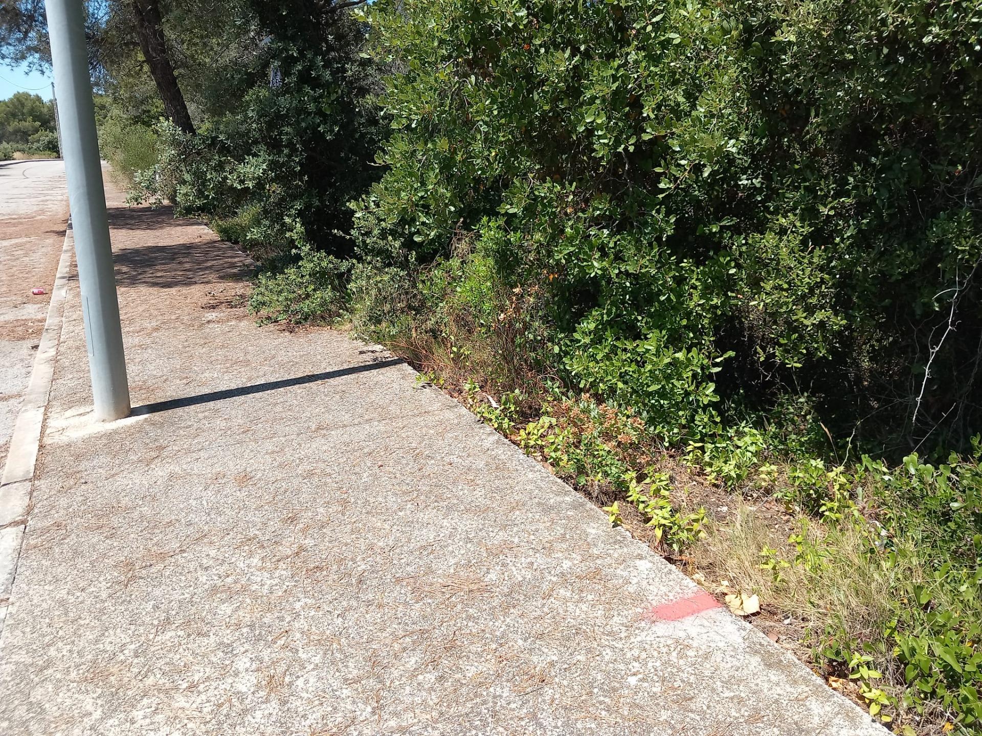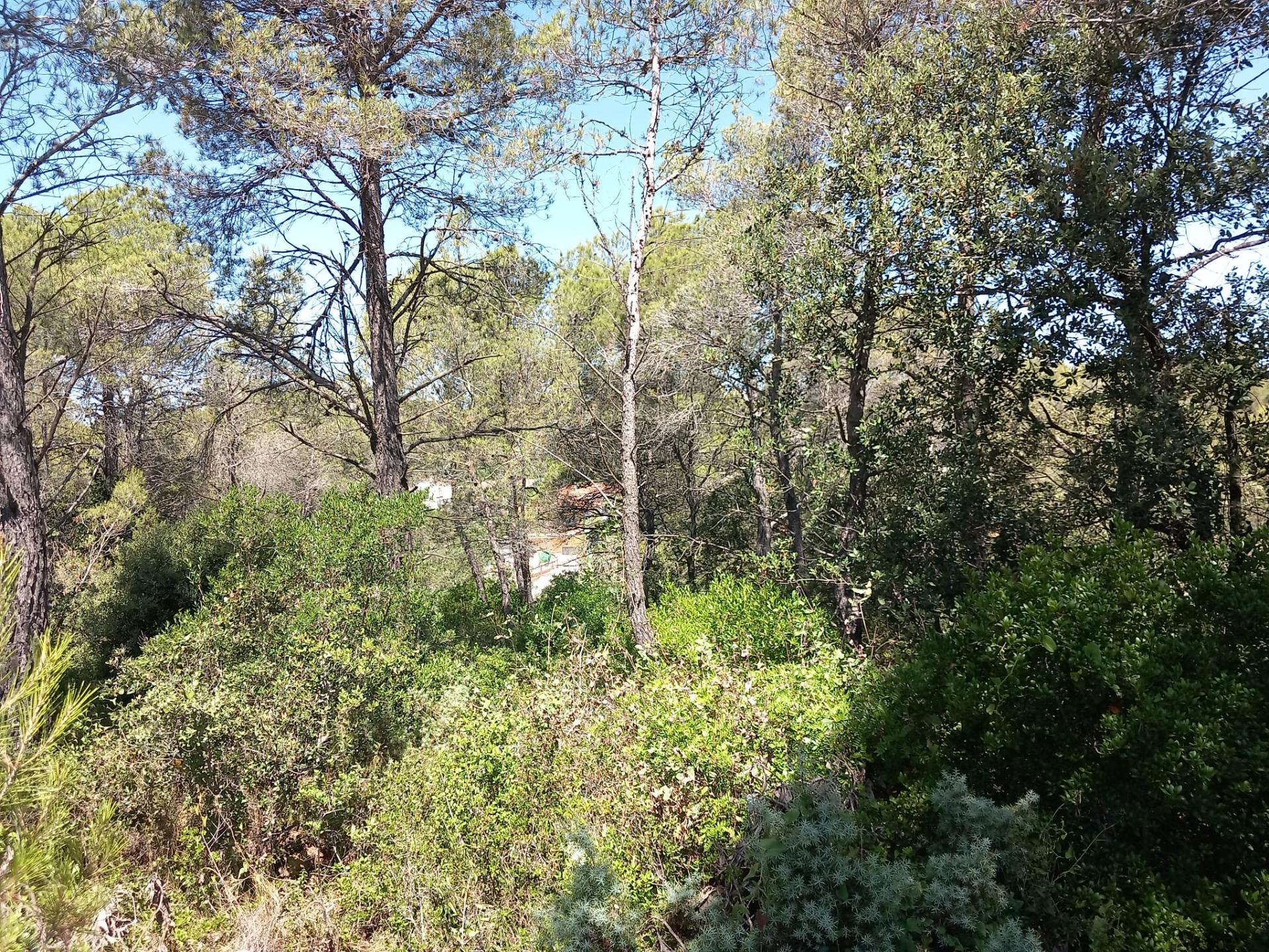 Terreny parcialment pla de pins en un carrer sense sortida.